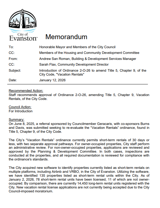 The Evanston City Council votes to tighten a proposed short-term rental ordinance, approving amendments that make the rules more restrictive than the version drafted by city staff.