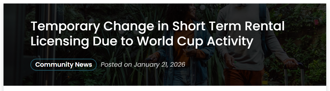 The City Council unanimously approved suspending neighbor notification requirements for STRs operating between May 25 and July 31, while keeping licensing and safety standards in place. The city will issue a temporary World Cup–specific STR license and approved permanent changes banning party use and requiring full parking compliance.