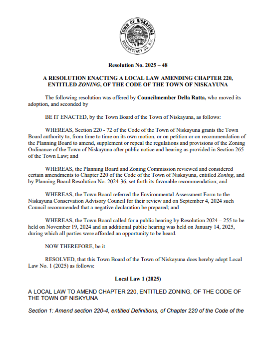 The Niskayuna Town Board has updated its short-term rental ordinance voting 3-1 on Tuesday to implement new restrictions. Under the revised law, hosts must be on-site during rentals, occupancy is capped at two guests per bedroom plus the host, and parking is limited to one vehicle per bedroom.
