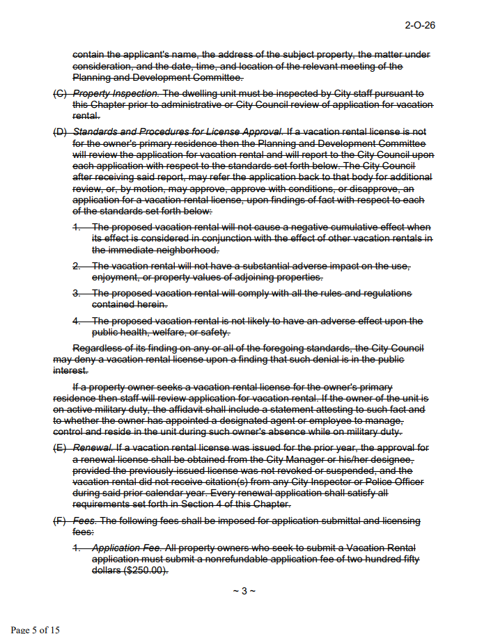 The ordinance caps STRs at 5% of housing, or 129 units, with existing rentals allowed to continue operating under certain conditions. New permits will only be issued if the total number drops below the cap. The rules also keep a three-night minimum stay to help reduce party house impacts.