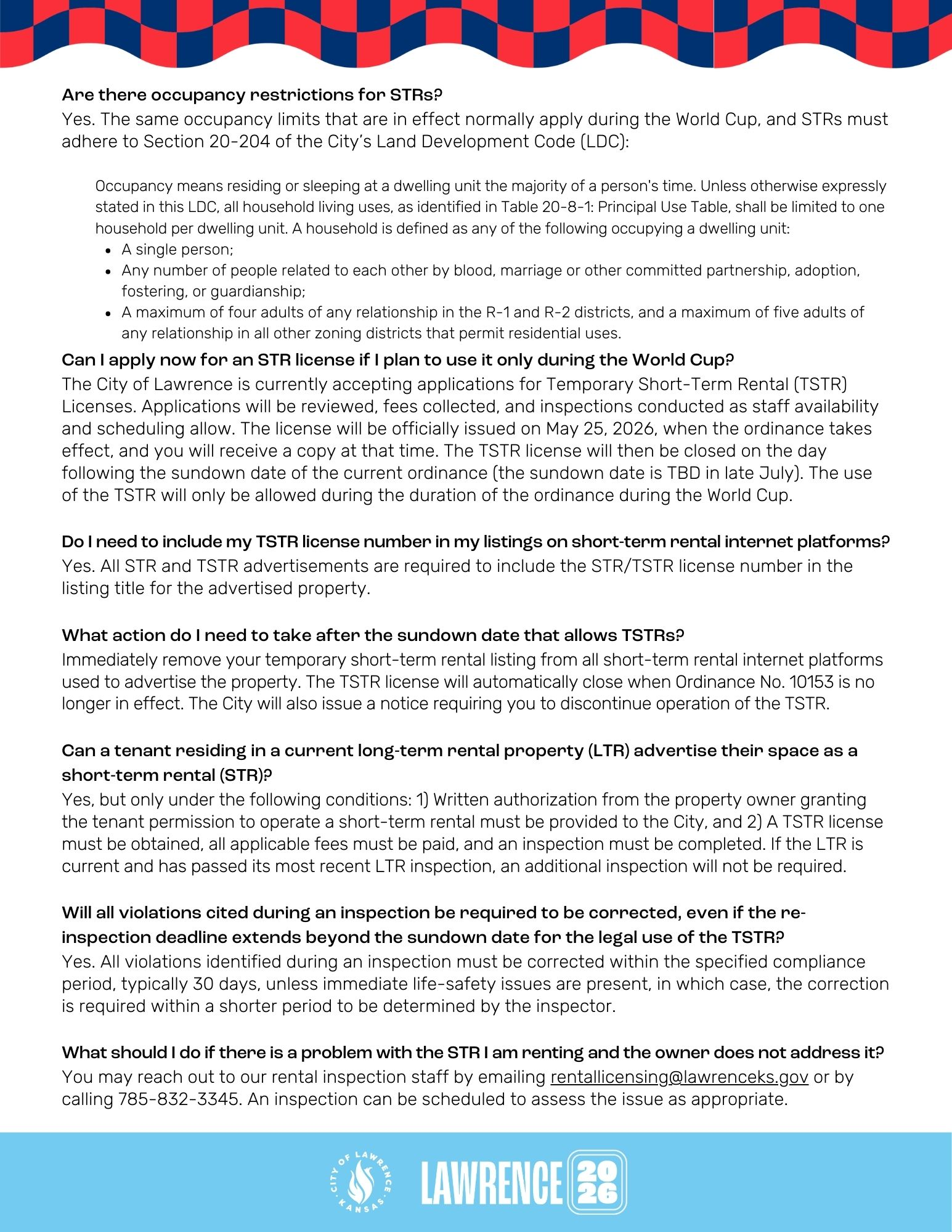 Lawrence is temporarily loosening short-term rental rules to prepare for a surge of visitors during the 2026 FIFA World Cup.