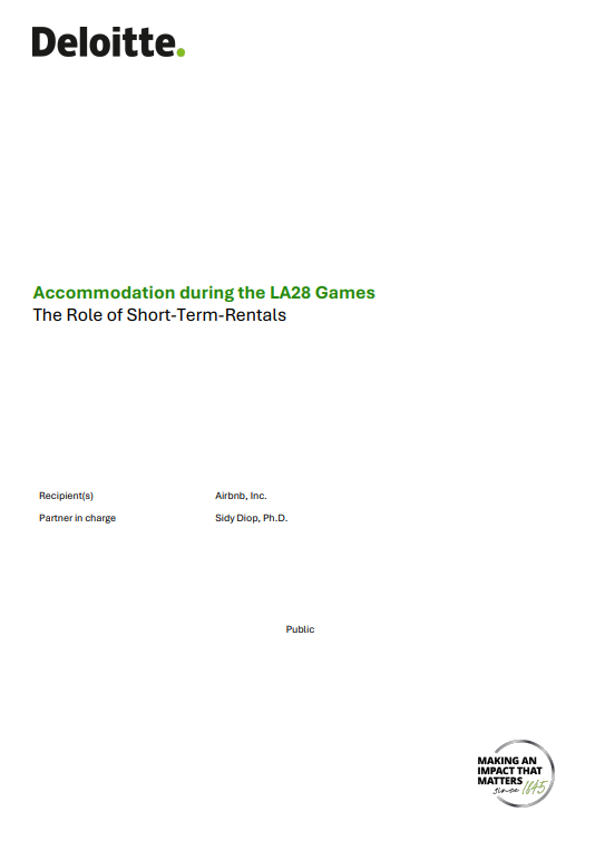 A Deloitte report finds lodging demand during the LA28 Olympics could exceed available capacity on 13 of 19 competition days, potentially leaving up to 320,000 visitors seeking accommodations and prompting calls for policy adjustments to expand short-term rental supply.