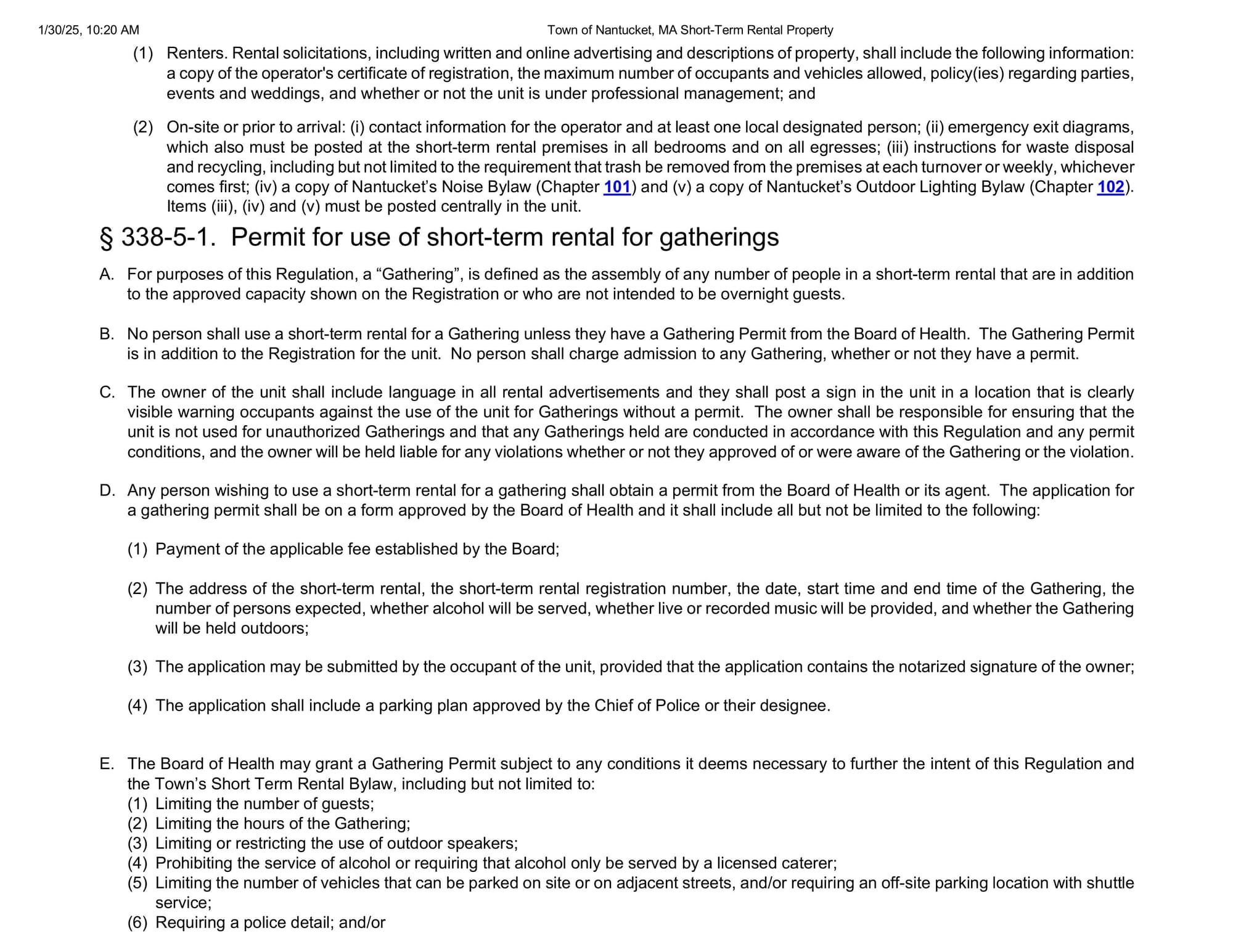 The Nantucket Board of Health is exploring new regulations to curb large gatherings at short-term rentals requiring a permit for events that exceed a property's registered capacity.