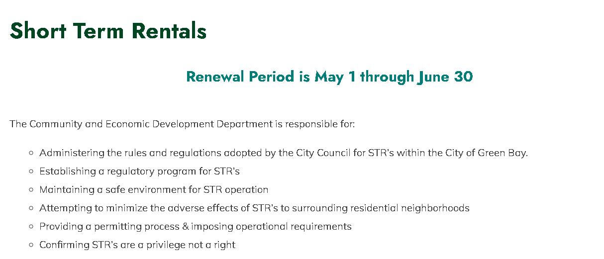 Officials in Green Bay are moving forward with revised short-term rental regulations that strengthen permit standards, require written guest rules covering noise and parking, and introduce defined enforcement procedures for problem properties.
