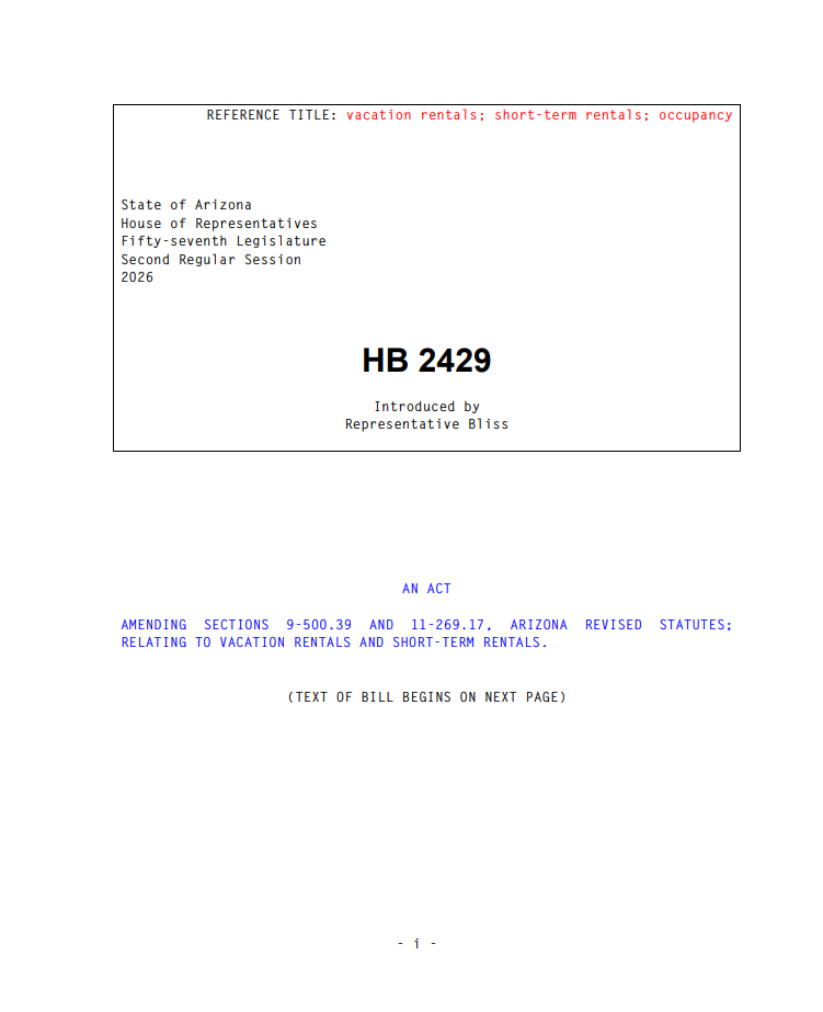 The Arizona House of Representatives has passed HB 2429, a bill that would provide cities with modest new tools to oversee short-term rentals while stopping short of granting broader regulatory authority sought by many communities.