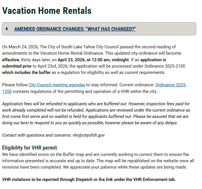 The South Lake Tahoe City Council has approved updates to the city’s Vacation Home Rental (VHR) ordinance, making several significant changes aimed at balancing tourism with neighborhood concerns. https://t.co/ki6NesJs10