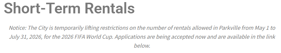 Parkville has temporarily lifted its short term rental cap ahead of the 2026 FIFA World Cup, approving seven new STR applications since relaxing its restrictions.