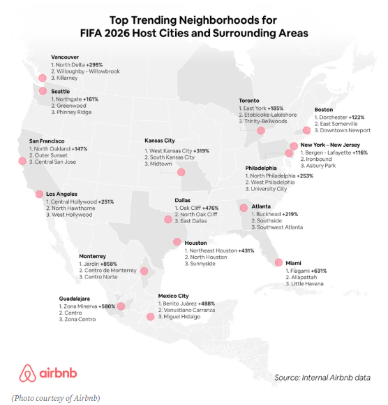 Airbnb booking data shows Dorchester as the fastest growing neighborhood in the Boston area for FIFA World Cup 2026 stays, with reservations for the June 11 through July 19 tournament window jumping 122% year over year.