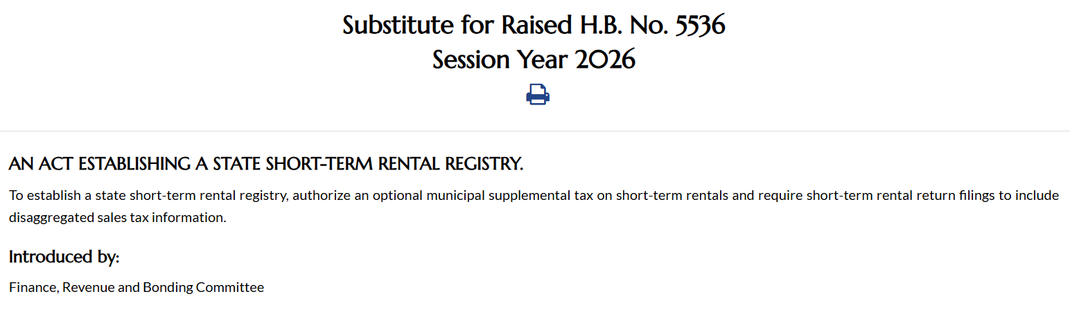 A proposed short-term rental bill in Connecticut is advancing after lawmakers removed a controversial provision that would have allowed municipalities to impose up to a 2.5% local tax.