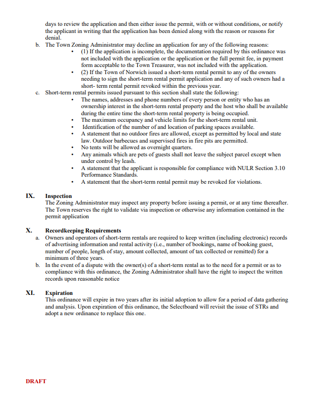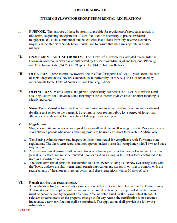 The Planning Commission moved forward with the proposal after residents raised concerns about properties being purchased specifically for serial Airbnb use, and because short term rentals currently exist in a regulatory gray area under the town's zoning rules. Under the proposed bylaws, owner occupied short term rentals would be permitted anywhere in town while non-owner occupied rentals would not be allowed going forward, though existing operations would be grandfathered in as non-conforming uses.