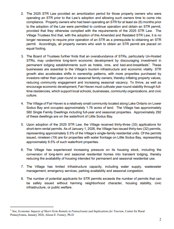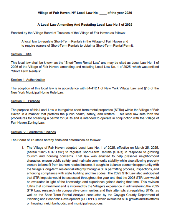 Fair Haven is proposing to cap the number of permitted short term rentals in the village, limiting operations to 34 properties overall and just 18 on the waterfront.