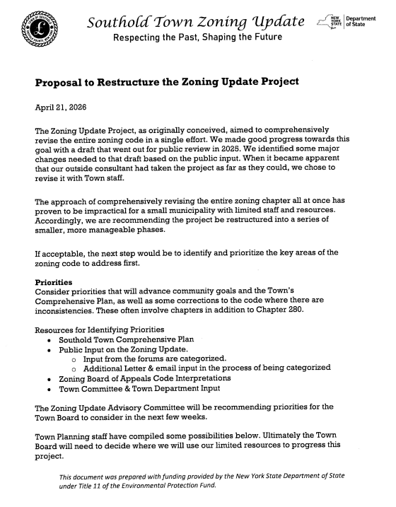 Southold Town is shifting to an incremental approach to its long delayed zoning code overhaul, with short term rental regulations among the first priority areas already underway alongside cell tower zoning and community housing updates.