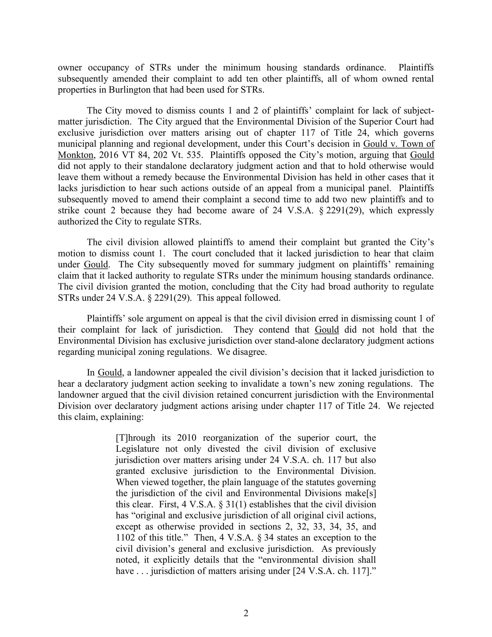 The Vermont Supreme Court has limited how Burlington short-term rental owners can challenge a 2022 ordinance restricting STRs to owner-occupied lots. A group of 12 hosts argued their properties should be exempt, but the high court upheld a lower court decision that civil court wasn’t the proper venue.