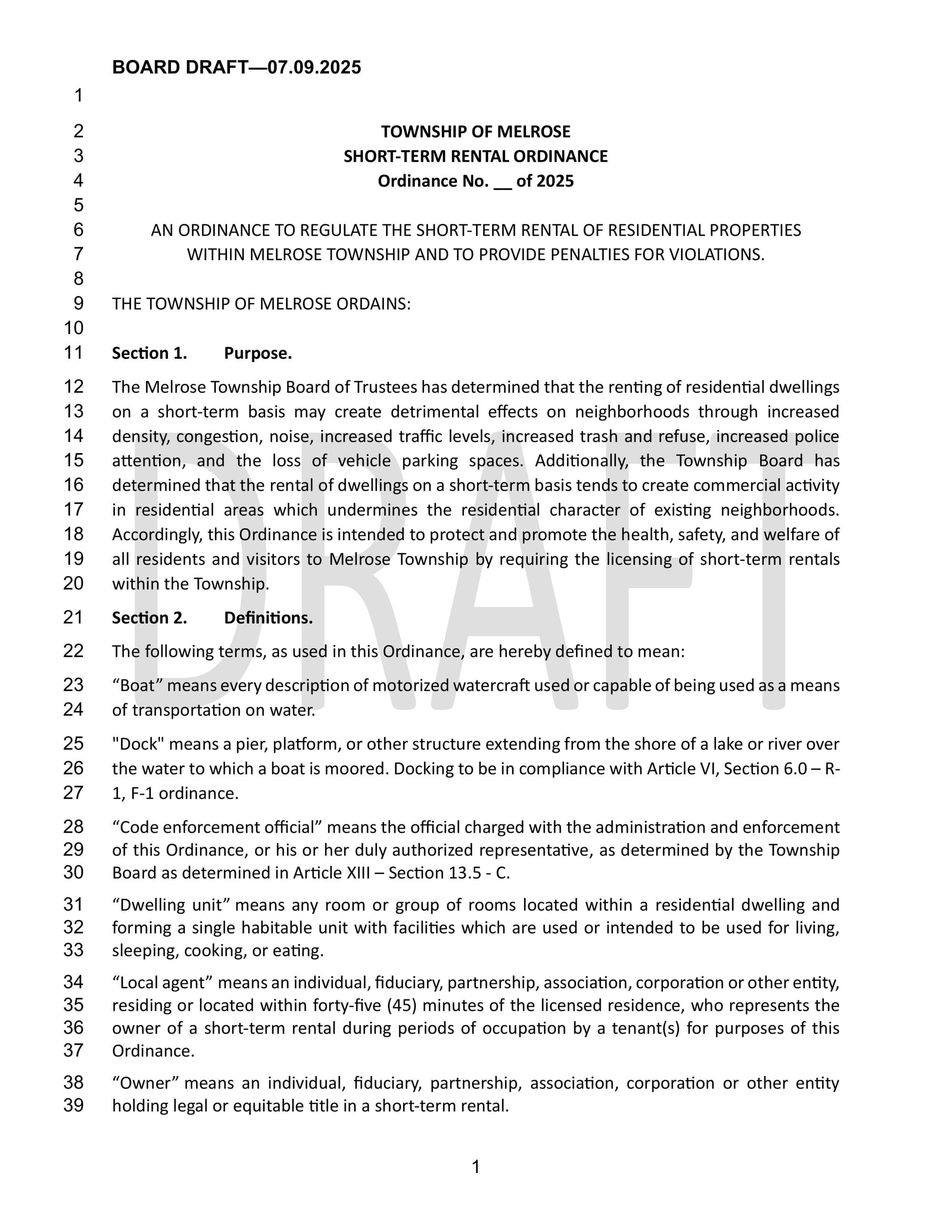 Melrose Township’s debate over short-term rental rules reached a new milestone this week as residents gathered for a public hearing on a draft ordinance aimed at regulating the growing STR market.