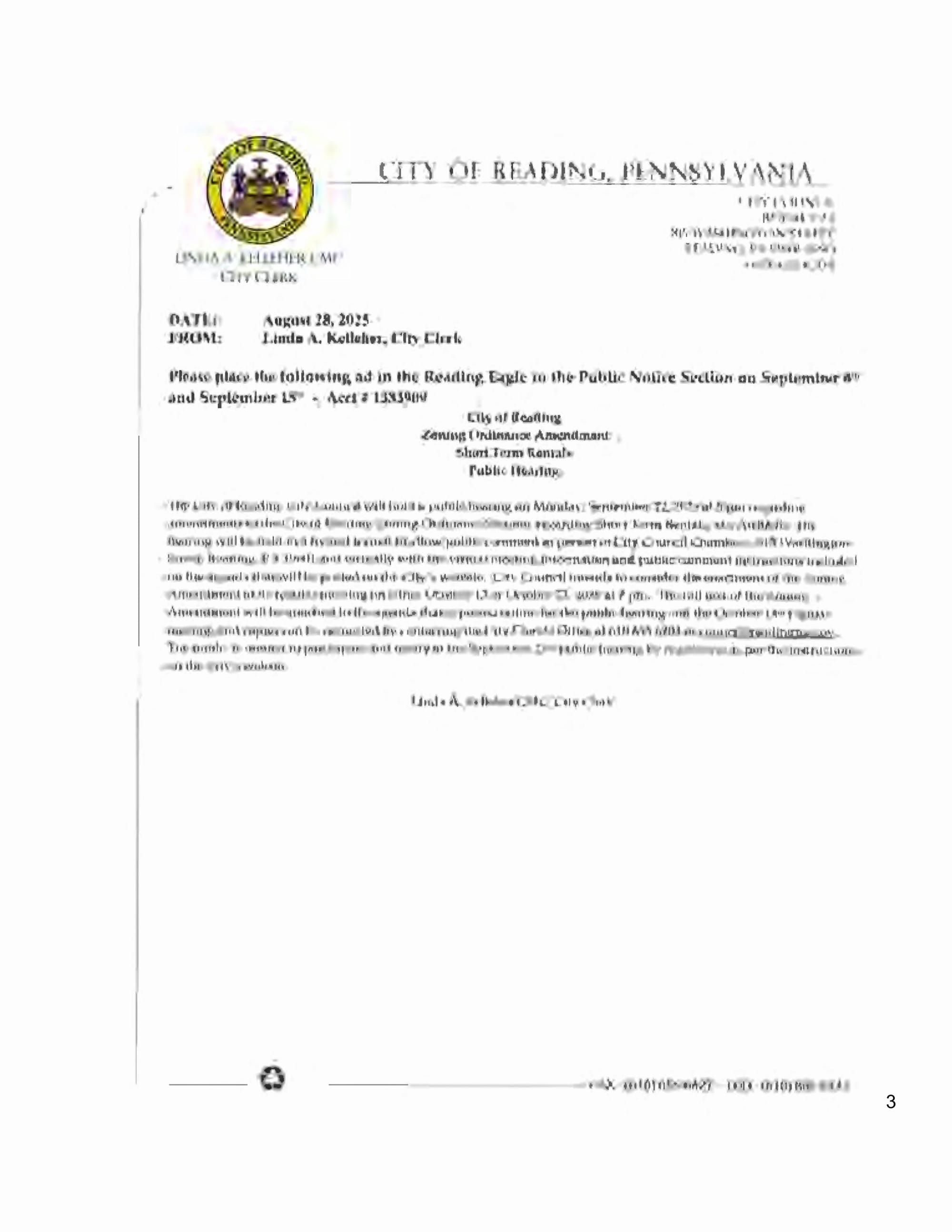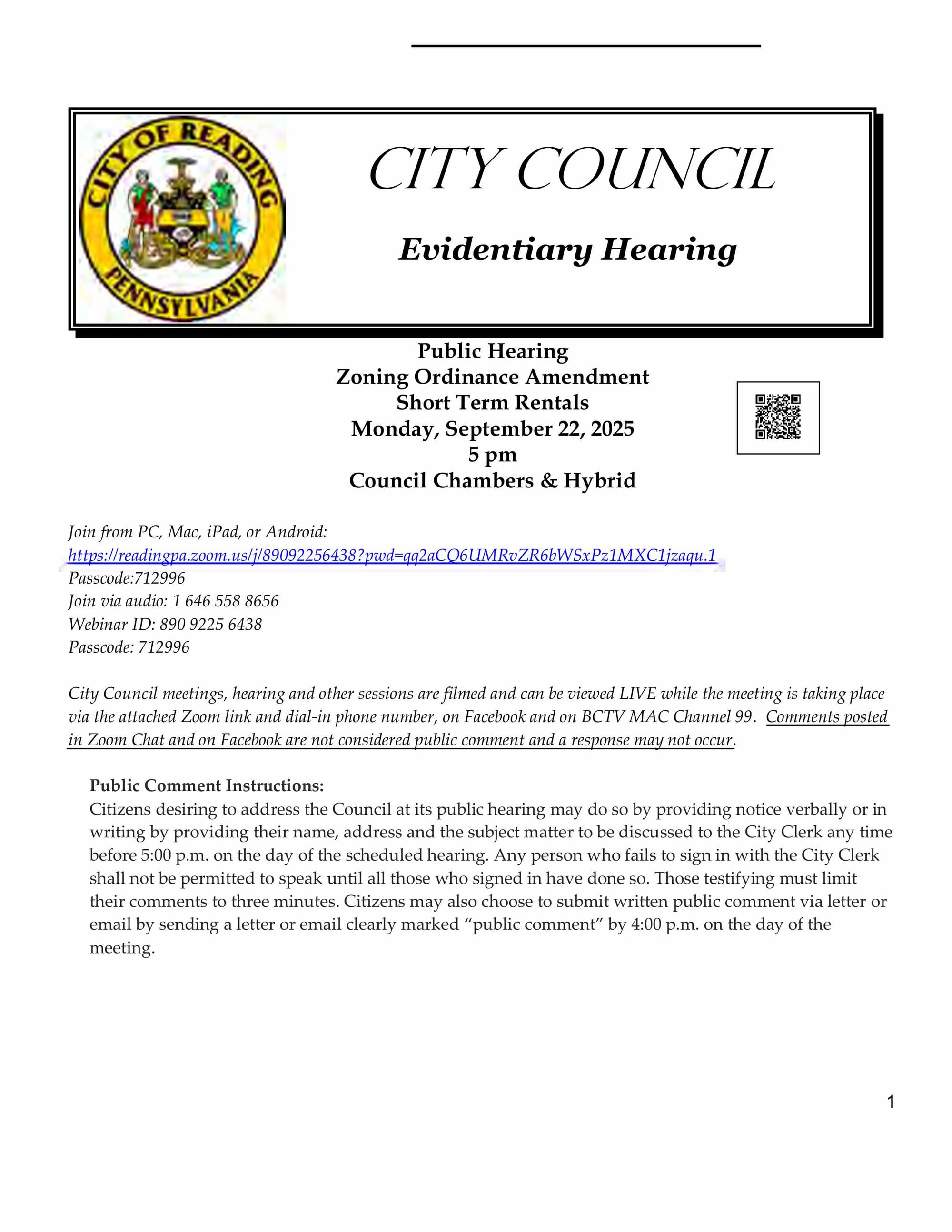 Reading City Council holds a public hearing on a proposed zoning amendment that would, for the first time, formally regulate short-term rentals like Airbnb and Vrbo.