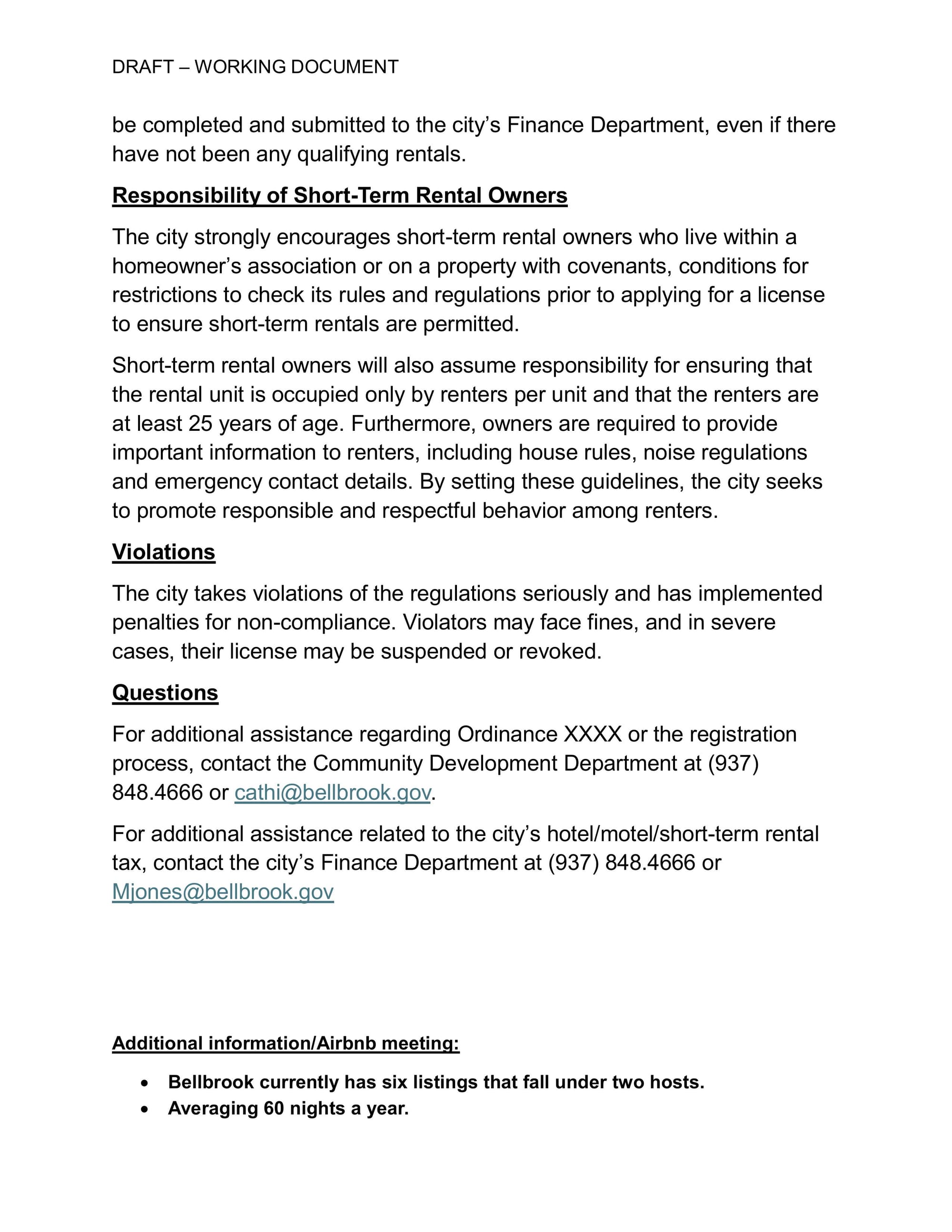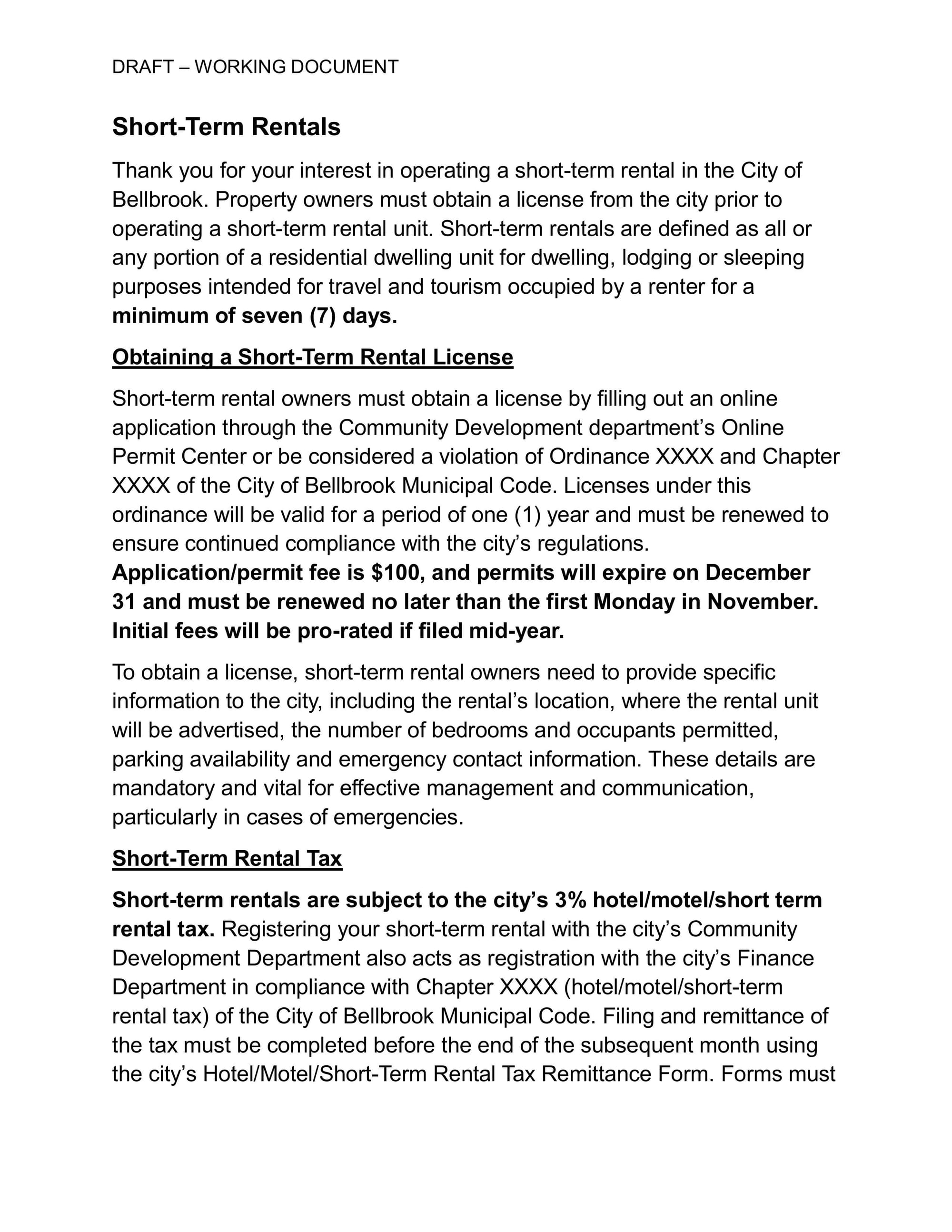 The draft ordinance caps STR stays at 27 days, excludes owner-occupied room rentals, and prohibits setups like tents, campers, trailers, and vehicles. Officials stress that all rental properties must be registered with the city to avoid fines, though the changes won’t significantly affect those already operating legally. A public hearing will follow before a final vote on Nov. 5.