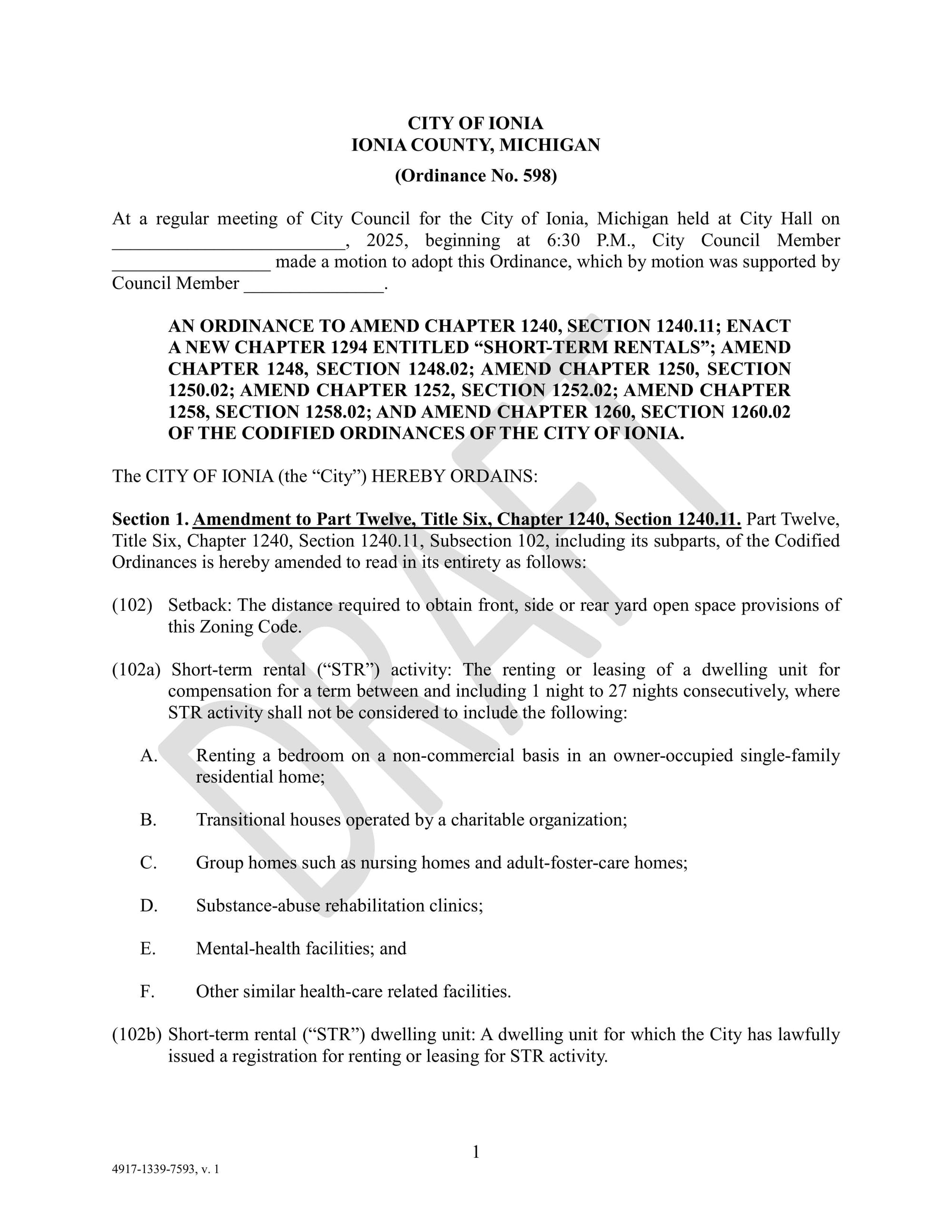 Ionia City Council is set to introduce updated short-term rental rules on Oct. 1, clarifying definitions and requirements for hosts.
