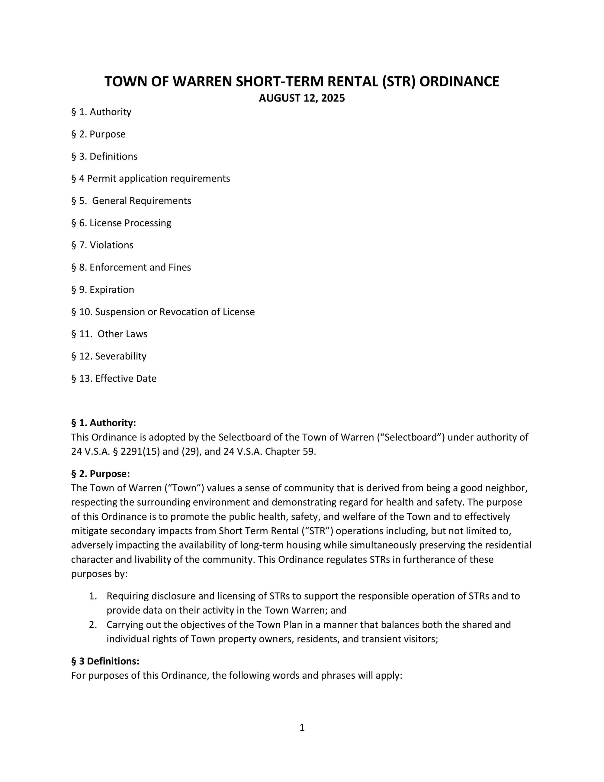 Warren’s short-term rental ordinance becomes law October 17, but concerns over weak enforcement dominated this week’s Select Board meeting.