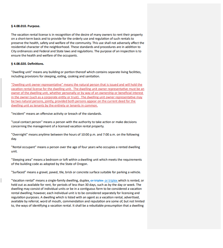 The proposed ordinance update mostly clarifies existing policy, reaffirming that only individuals listed on the property deed can hold a vacation rental license. The rule, first adopted in 2017 after lengthy public debate, means licenses expire when an owner sells the home or passes away. The council asked staff to study how other Oregon coastal towns handle transfers and to revisit the legal implications before a second public hearing and potential vote in December.