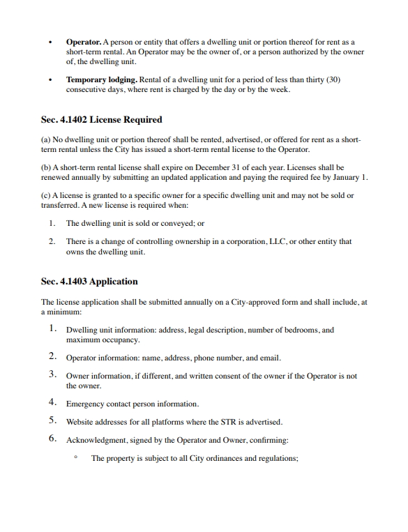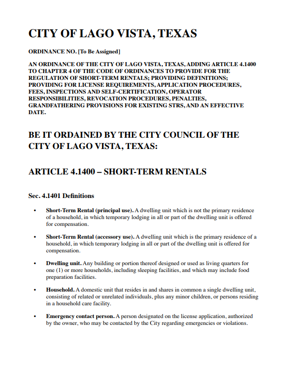 During the Oct. 20 City Council meeting, several speakers called for a full ban on residential STRs and for any council or staff members with rental holdings to recuse themselves from future decisions. Residents cited the newly signed Senate Bill 346, which will allow local governments to require STR platforms to share data starting in 2026, as a key enforcement tool. They also urged the council to create a permit system, collect occupancy taxes, impose fines, and publish a public registry of rentals.