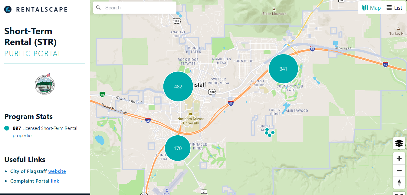 The City of Flagstaff has released an interactive map that shows the location of all short-term rentals and provides emergency contact information for each property.