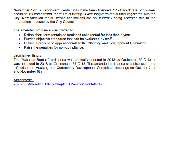 The measure, now headed to the full city council, aims to regulate rentals that currently fall outside city zoning rules. The committee also noted that fewer than 1% of vacation rentals hold the required state lodging license, raising safety concerns.
