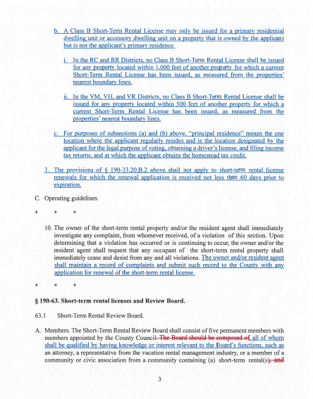 The legislation has been pared down, removing requirements such as seven-night minimum stays and mandatory landlines, but would still require rental owners to attend public hearings for new licenses and create two classes of licenses. The County Council could vote on the bill at its Dec. 9 meeting, but a third vote for passage has yet to materialize.