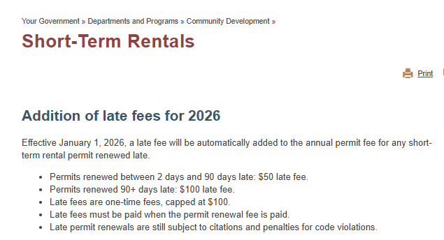 The city now requires STR owners to obtain a home occupation permit, pay annual business license taxes, and follow rules on quiet hours and prohibited activities. Service calls tied to STRs have dropped as enforcement improved, though 16 units remain noncompliant.