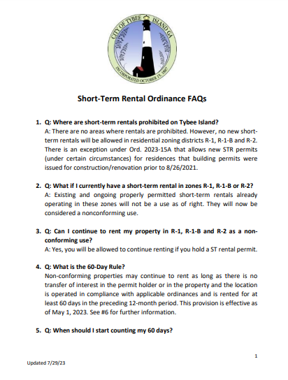 Check out Tybee Island's Short-Term Rental FAQ.