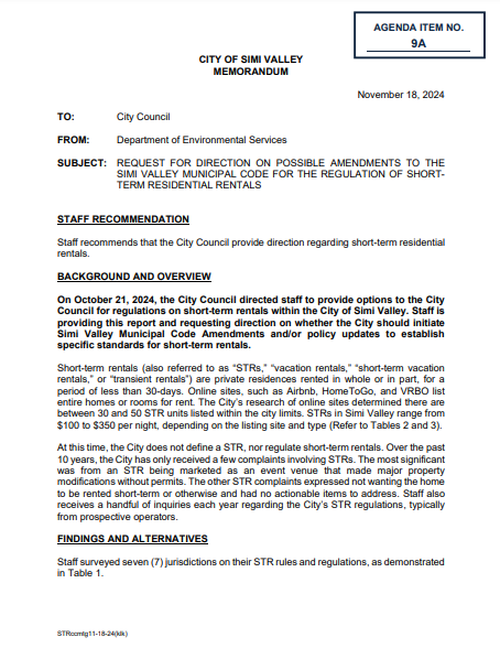 The Simi Valley City Council is taking steps toward regulating short-term rentals (STRs) instead of banning them, following resident complaints about neighborhood disruptions and the potential transformation of the “Poltergeist” house into a rental and event space.