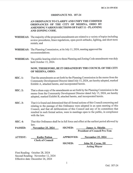 Medina has finalized regulations for short-term rentals, introducing zoning updates that clarify where these properties are permitted and set operational limits.