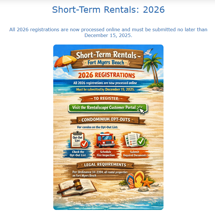 The Town of Fort Myers Beach announces increased enforcement against unregistered short-term rentals, identifying about 500 properties currently operating without approval.