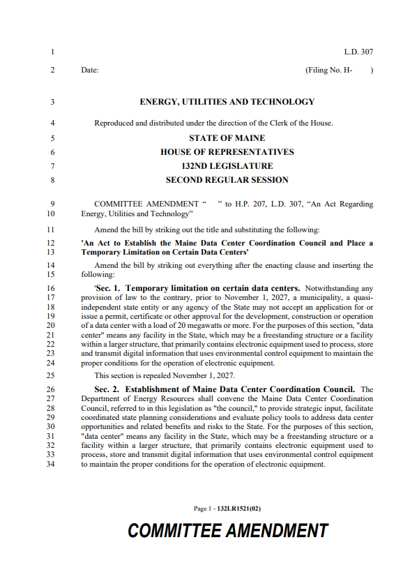 - Maine legislature passes first-in-nation moratorium on data centers over 20 MW.