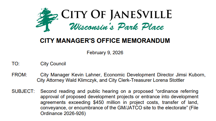 The Janesville City Council voted unanimously Monday night to place a proposed ordinance governing large development projects on the former GM/JATCO site on the November ballot. The decision followed nearly three hours of public comment from Janesville and greater Rock County residents.