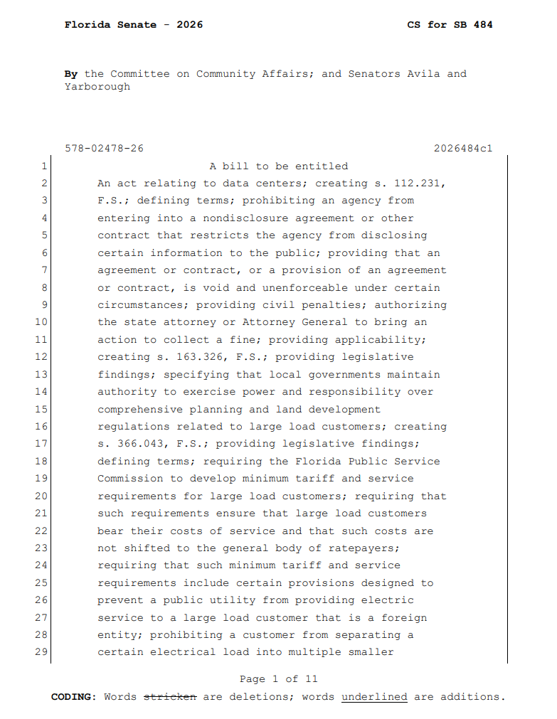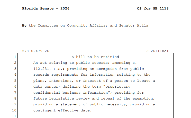 Two data center bills advanced out of the Senate Rules Committee and are headed to the Senate floor. SB 484, by Miami Springs Republican Sen. Bryan Ávila, passed unanimously. SB 1118 advanced 16-8.