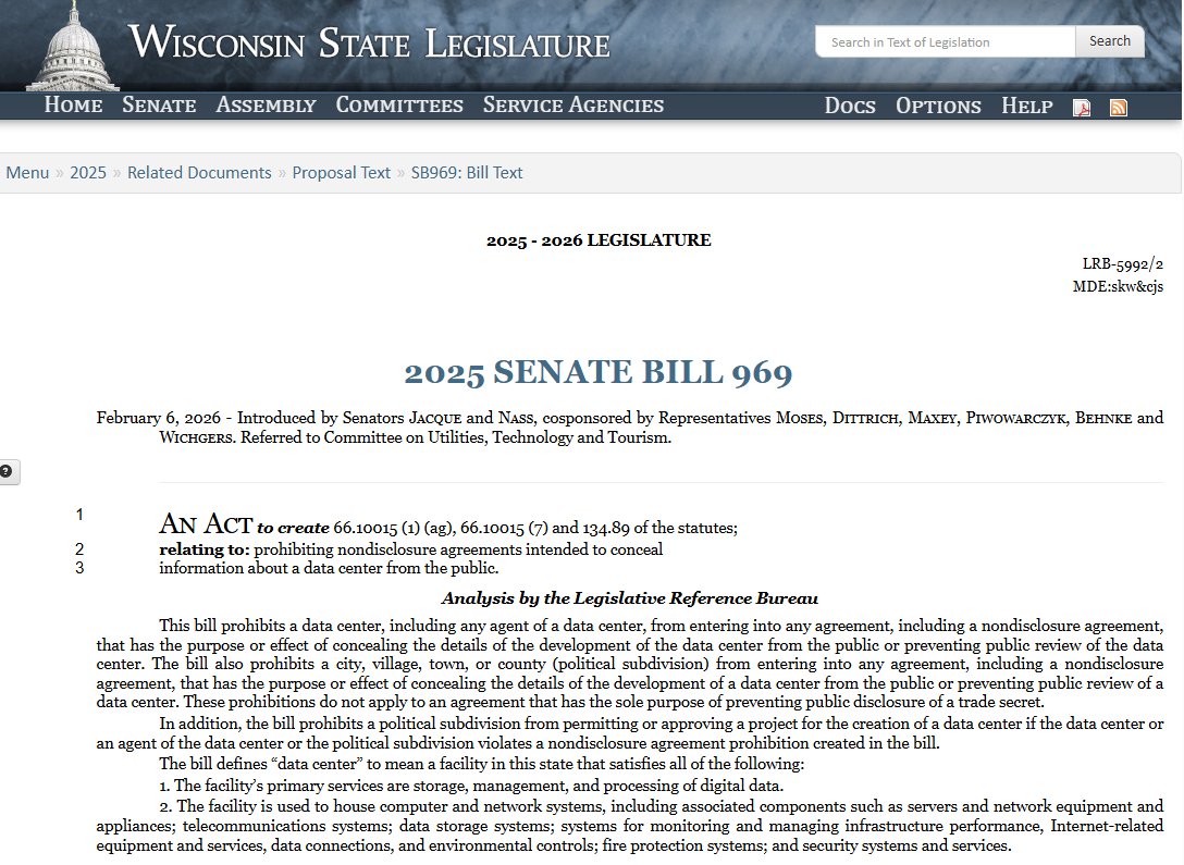 SB 969, would impose a blanket ban on NDAs between data center companies and municipalities.