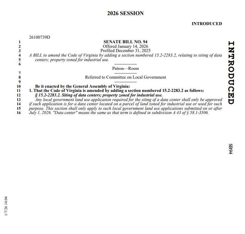 Sponsored by Sen. Danica Roem, the bill would classify modern data centers as industrial uses, giving localities clearer authority to site them alongside manufacturers and warehouses rather than near homes. While the measure would not affect existing facilities, it would apply to new construction and allow communities to rezone land if they choose.