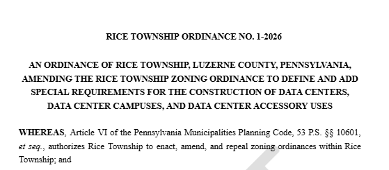 Rice Township supervisors will hold a public hearing March 3 at 6:30 p.m. on proposed zoning amendments that would create some of the most comprehensive local data center regulations in the region.