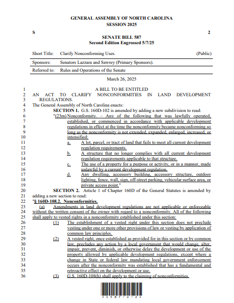 Senate Bill 382, passed by Republicans in late 2024 over Gov. Roy Cooper's veto, was primarily focused on hurricane relief funding and stripping executive branch power. But tucked near the end was a restriction barring municipalities from initiating downzonings, such as reducing permitted uses, without written consent from all affected property owners. In practice, if data centers are currently allowed in a zone, cities can't pass new rules limiting them. Salim Furth, a free-market advocate at George Mason University who initially praised the change, now calls it the nation's strictest downzoning restriction. Southern Pines has stopped amending its development ordinance entirely, and Durham canceled a public meeting on its own.