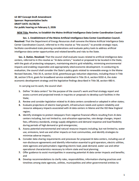 - Maine legislators weigh a moratorium on data centers above 20 megawatts through July 2028.