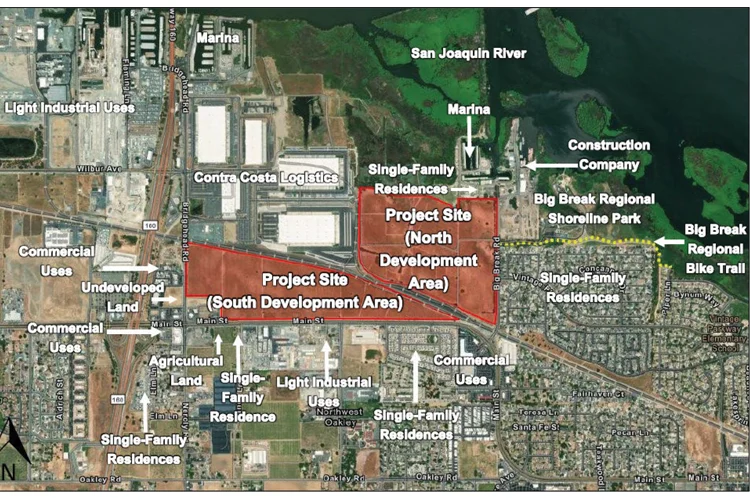 The City Council voted to approve the modified plan around midnight. The site borders single-family homes, Big Break Regional Shoreline, and Big Break Marina. The revised project is expected to add $1.1 million to $1.4 million annually to the city's general fund and generate roughly 3,500 permanent jobs. Dozens of residents had voiced concerns about electricity and water strain during public comment.