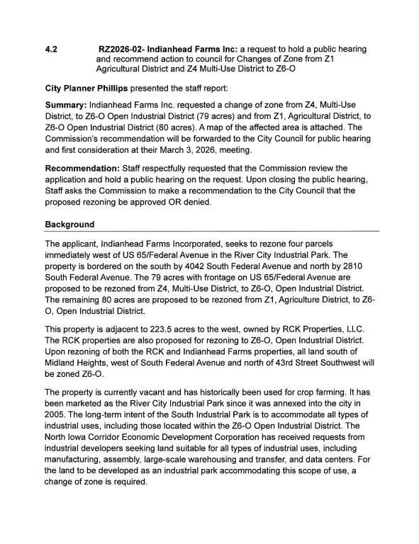 Mason City Council approved the second reading of a zoning change that would convert agricultural and mixed-use land on the southwest side of the city into an Open Industrial district.