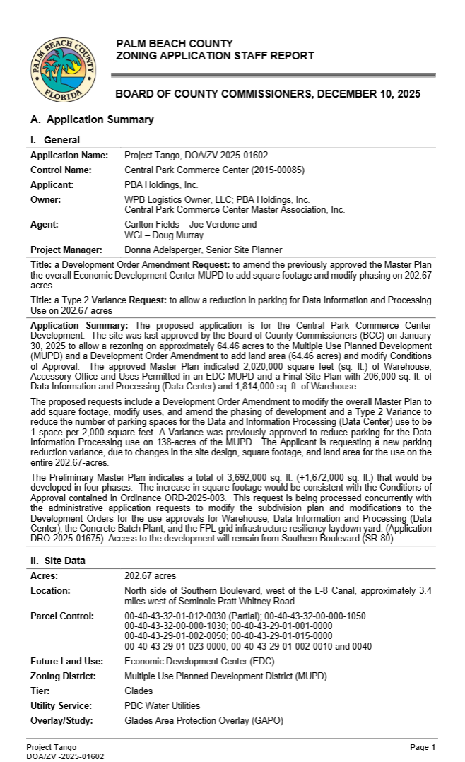 Four hundred people packed the Royal Palm Beach Cultural Center for a town hall on Project Tango, a proposed data center at Southern Boulevard near the Arden neighborhood. The meeting quickly turned into shouting, booing, and accusations.