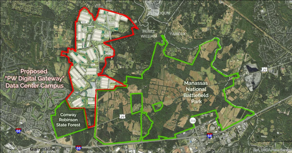 A three-judge Virginia Court of Appeals panel heard oral arguments in two separate challenges to the Digital Gateway data center project, a proposed corridor of over 22 million square feet across 2,100+ acres near Gainesville.