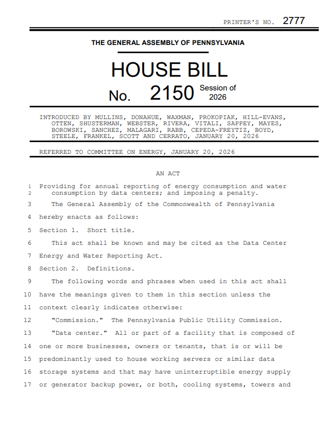 - Pennsylvania: House Energy Committee advances two data center bills.