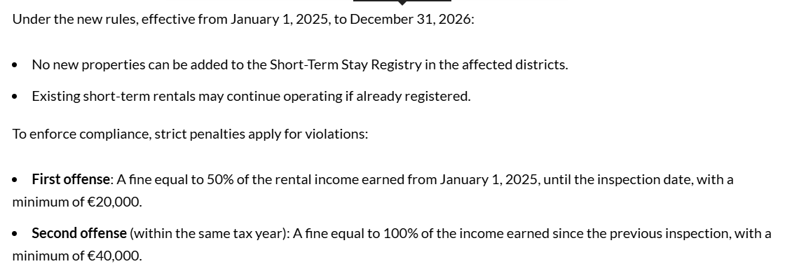 The measure applies to the city’s first, second, and third municipal districts, where tourism demand is highest. Existing registered rentals may continue operating, but no new listings will be allowed during the ban period.