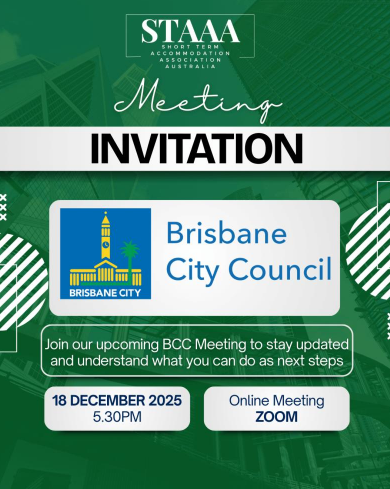 STAAA says the draft rules could effectively block many everyday hosts, small operators, and even compliant high-density rentals from obtaining permits. The association will outline key issues, its policy position, and next steps for industry advocacy. The Zoom meeting is scheduled for Dec. 18 at 5:30 p.m. AEST.