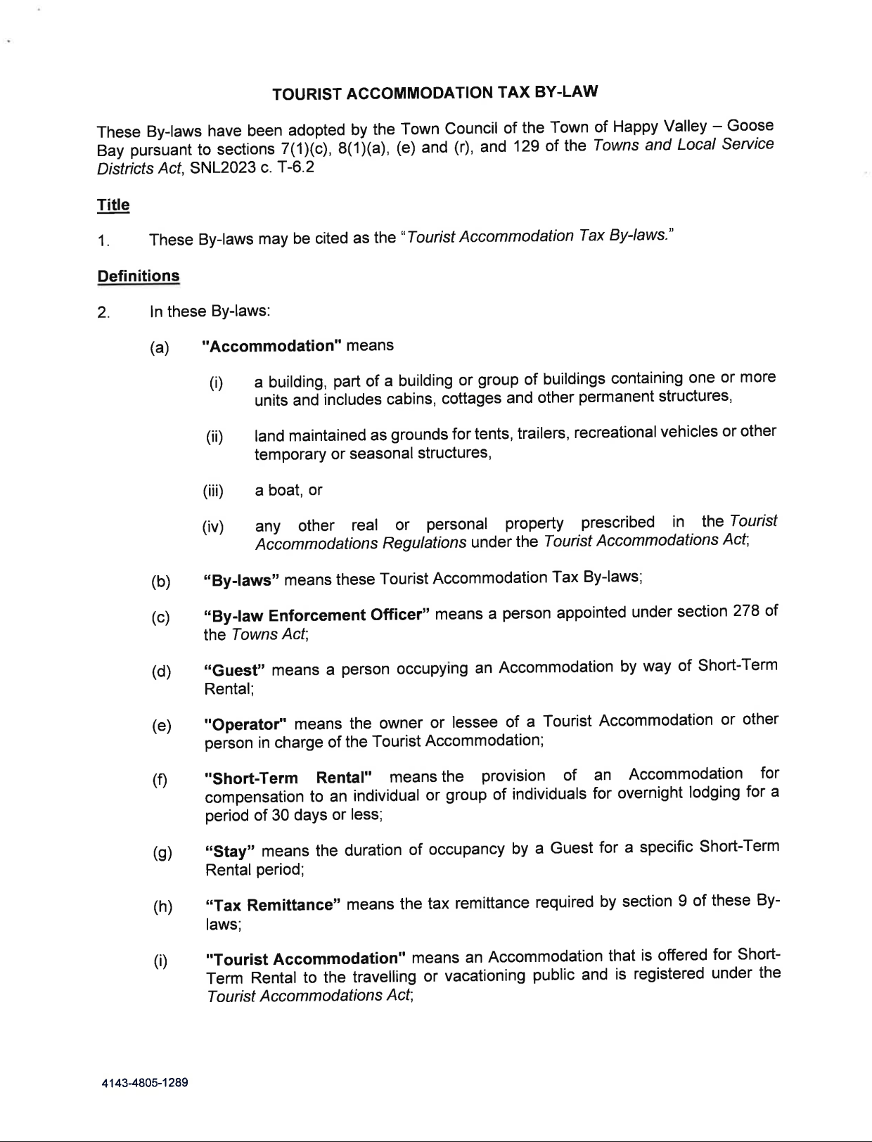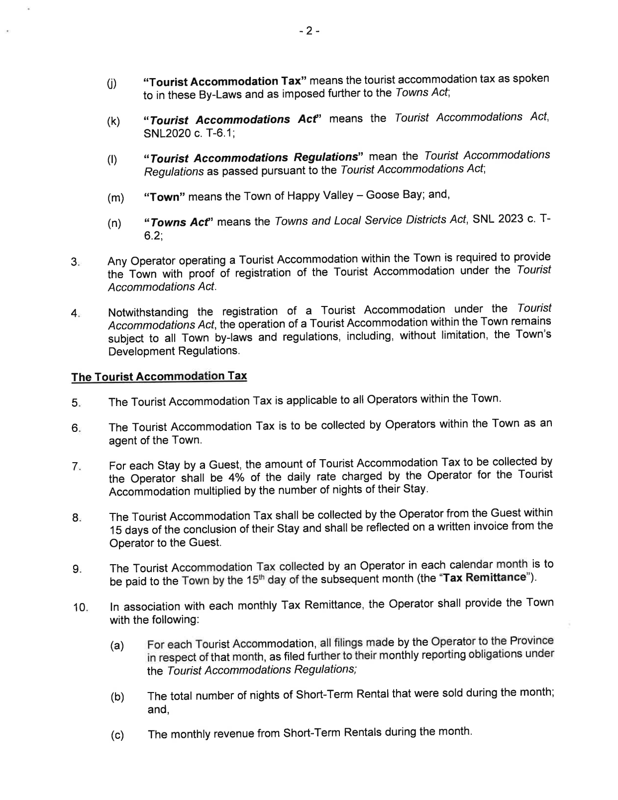 Tourist Accommodation Tax By-Law of Town of Happy Valley - Goose Bay