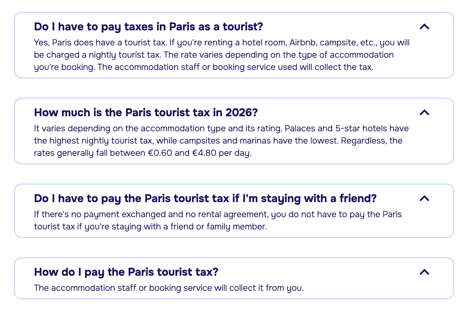 Effective January 1, 2026, Paris raised its tourist accommodation tax, but only at the top end of the market. Nightly rates at five-star hotels climbed to €11.70 (from €11.38), while palace-level stays rose to €15.93 (from €15.60). Rates for one- to four-star hotels and campsites remain unchanged.