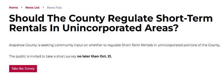 Arapahoe County Opens Public Input on STR Licensing Plan